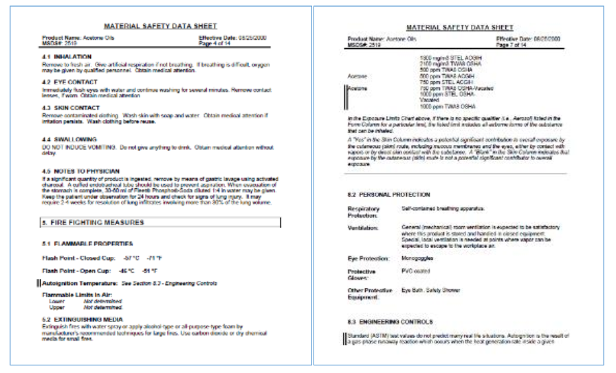 The typical example of acetone oil by Dow Chemical as material safety data sheet below.